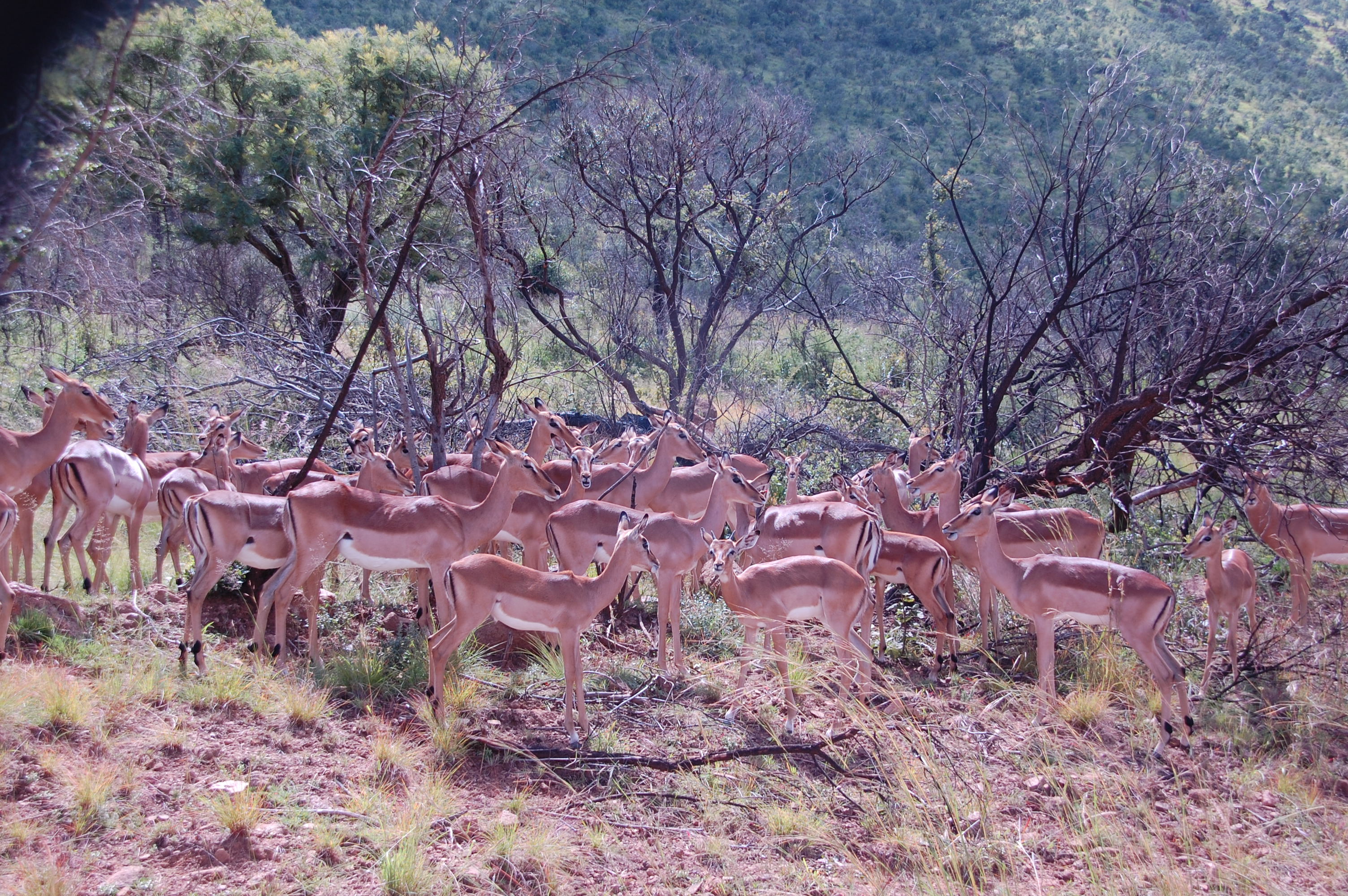 We start the next day very early. Up at 5:30 a.m. and it’s still dark! Day and night comes suddenly in Africa, so by the time we reach the reception to meet our game guide the dawn has broken, but as we are traveling in an open jeep, we are wrapped up warm against the chill air. It’s always good to take a game drive to get your bearings in the park and find out where the game is with the guide’s superior knowledge and contacts . In our case this morning it was more about where the game wasn’t as we saw very little during our cold morning drive of 3 ½ hours. We ‘bagged’ the black rhino – very rare to see and much more aggressive and elusive than its more plentiful white cousin. We did however find a whole troupe of elephants far away on the hillside, and this enabled us to do some self-drive tracking later in the day with more close encounters of the main herd with a nursery of small elephants.