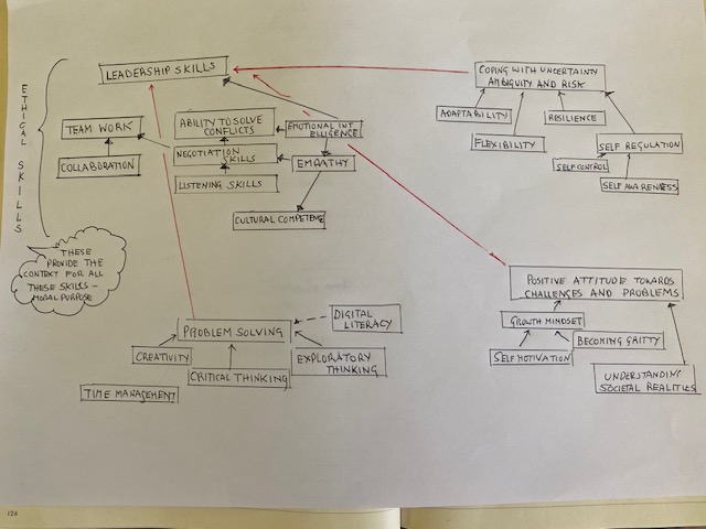 One can go too deep here, but to illustrate – emotional intelligence is a vital quality for any leader. Along with empathy and listening skills it enables negotiation and conflict resolution. Then along with collaborative approaches these help create a team approach. This list of skills was developed through the 6 weeks of discussion with a range of academics – they are not mine. But what was interesting for me was how three other foci emerged – coping with uncertainty, ambiguity and risk, a positive attitude to challenges and problem-solving skills. However, we define these skills, whether we call them core competencies future skills or soft skills, these three areas along with leading – which I define more about ownership and agency – are what young people need to master if they are to be successful.